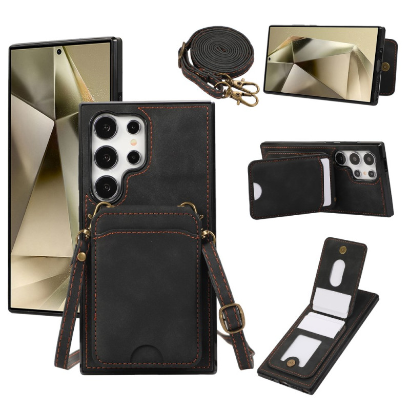 Étui portefeuille multifonction pour Samsung Galaxy S26 Ultra avec 5 emplacements pour cartes, béquille intégrée et bandoulière détachable. Protection militaire renforcée en cuir PU et TPU avec fermeture magnétique sécurisée.