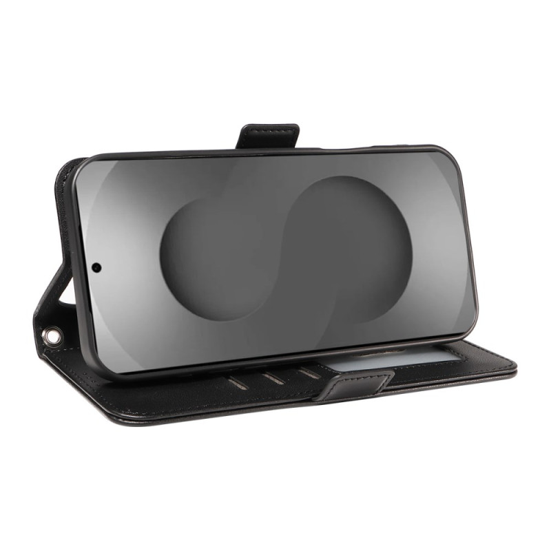 Étui élégant pour Samsung Galaxy S26 Ultra alliant luxe et praticité. Décoré de strass avec motif losange, il dispose de 3 emplacements pour cartes, d'une poche pour billets et d'une protection RFID. Le rabat magnétique se transforme en support.