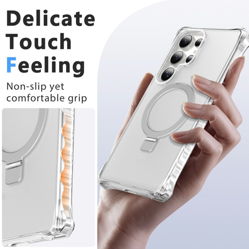 Protégez votre Samsung Galaxy S26 Ultra avec cette coque magnétique hybride haut de gamme. Son design aux bords ondulés offre une prise en main confortable et antidérapante. Équipée d'un support pliable pratique et d'un anneau magnétique intégré.