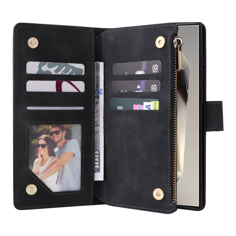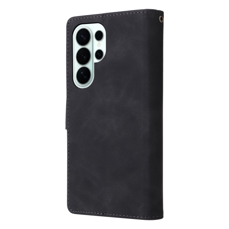 Étui portefeuille élégant pour Samsung Galaxy S26 Ultra combinant protection et praticité. Doté de multiples emplacements pour cartes, d'une poche zippée pour la monnaie, d'une fermeture magnétique sécurisée et d'une dragonne pratique...