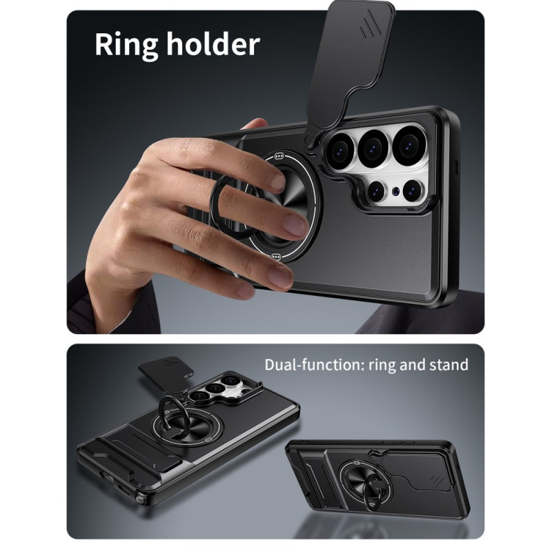 Protégez votre Samsung Galaxy S26 Ultra avec cette coque magnétique innovante. Dotée d'un anneau rotatif 360°, d'un support pliable ajustable et d'une protection caméra coulissante, elle offre sécurité et praticité au quotidien...