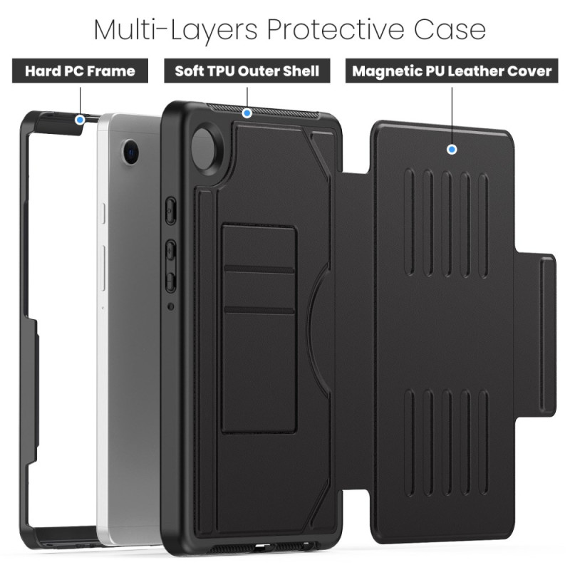Tutustu Samsung Galaxy Tab A11 Plus / A9 Plus -koteloon, jossa on monikerroksinen suojarakenne, integroidut kortti- ja kynäpaikat, automaattinen lepotoiminto ja 5-tasoinen säädettävä tuki.