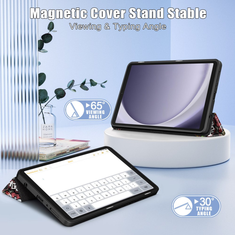 Tämä kolmiosainen kansi tarjoaa vankan ja monipuolisen tuen katseluun ja kirjoittamiseen.