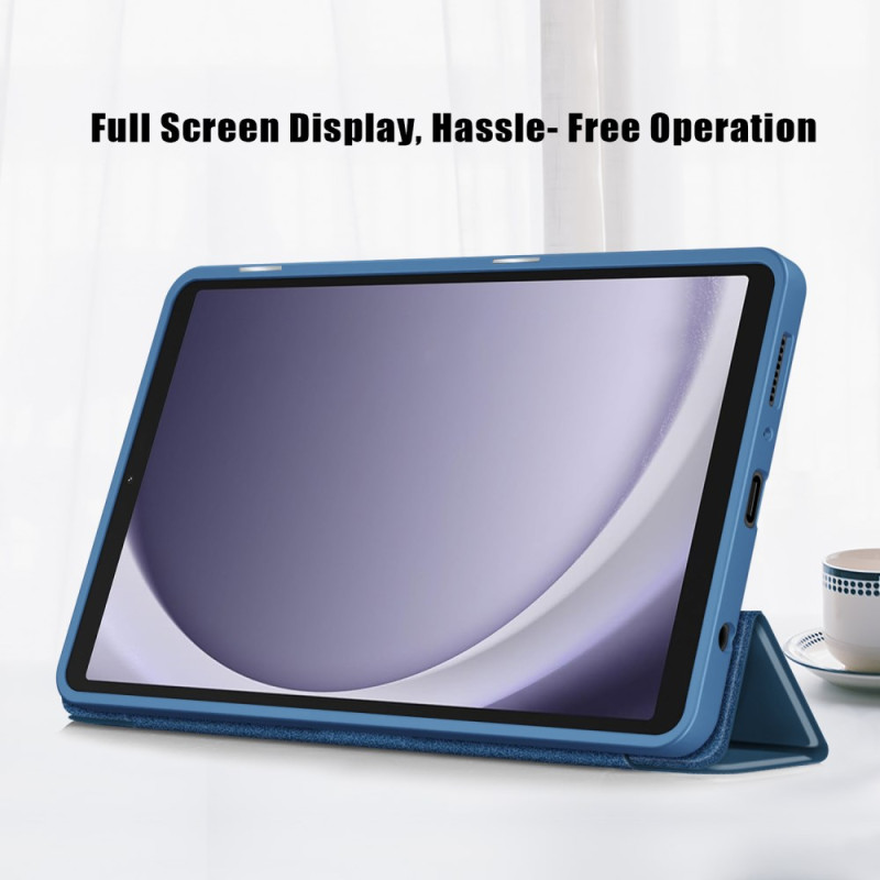 Samsung Galaxy Tab A9:lle tarjoaa täydellisen suojan ja helpon pääsyn kaikkiin tärkeisiin portteihin ja painikkeisiin.