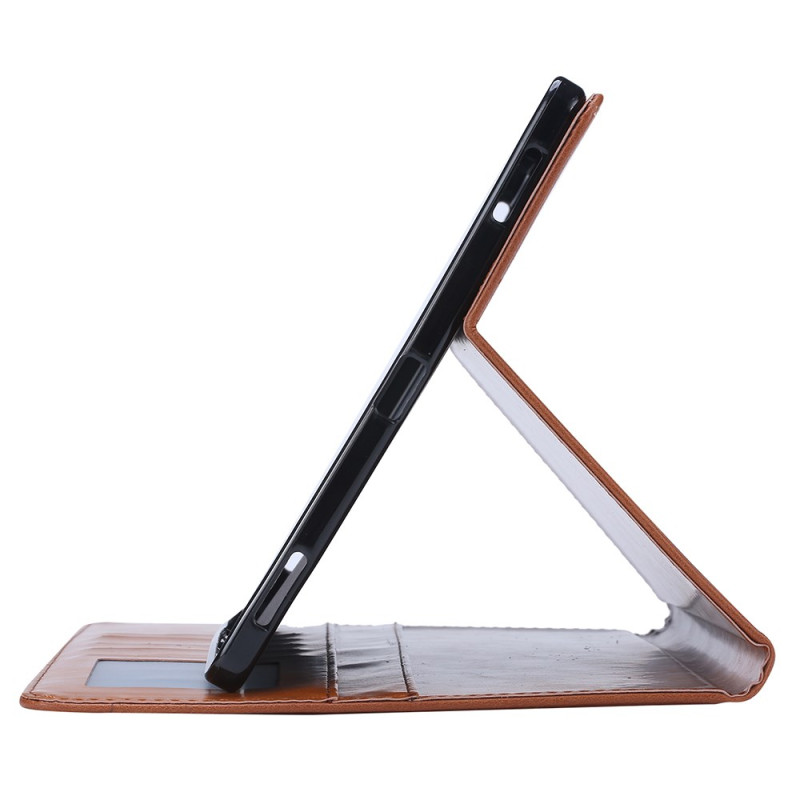 Tutustu huippuluokan keinonahkakuoreen, jossa on lompakkomuotoilu ja integroitu jalusta.