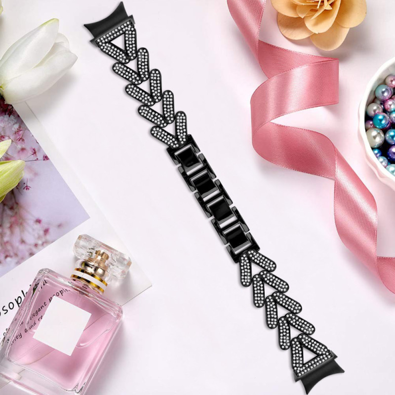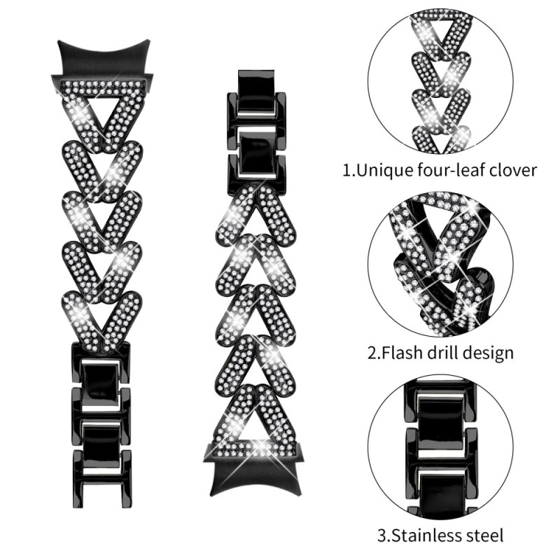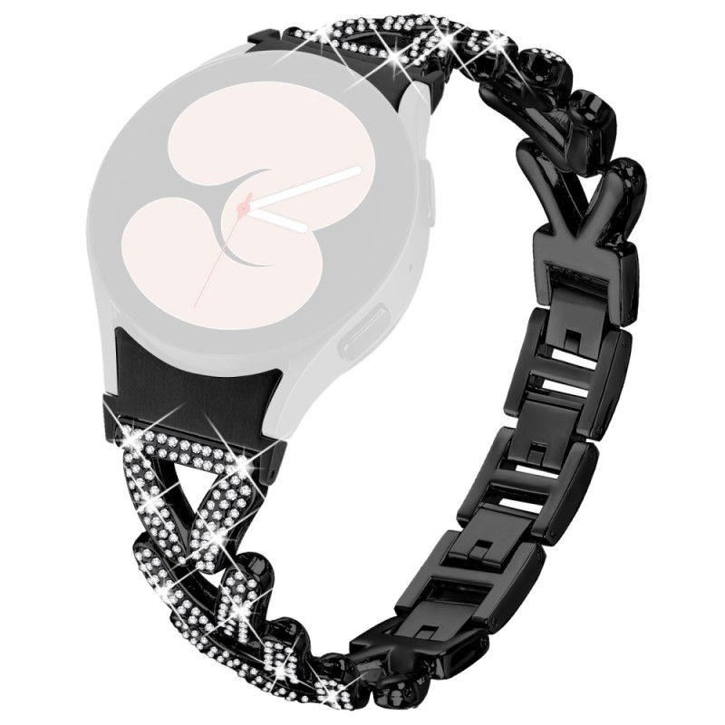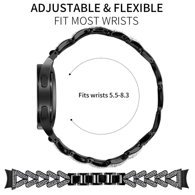 Tutustu tyylikkääseen kellohihnaan Samsung Galaxy Watch7:lle. Laadukkaasta sinkkiseoksesta valmistetussa ja strasseilla koristellussa rannekkeessa yhdistyvät kestävyys ja tyyli.