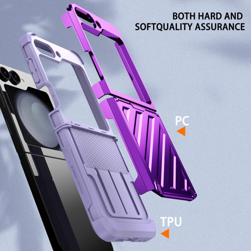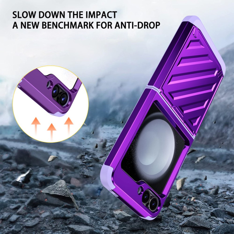 Tutustu innovatiiviseen suojakuoreemme Samsung Galaxy Z Flip 7 FE / Z Flip 6 -puhelimelle. Galvanoidulla TPU- ja PC-panssarilla suunniteltu suojakuori tarjoaa poikkeuksellisen iskunkestävyyden ja vahvistetun saranasuojauksen.