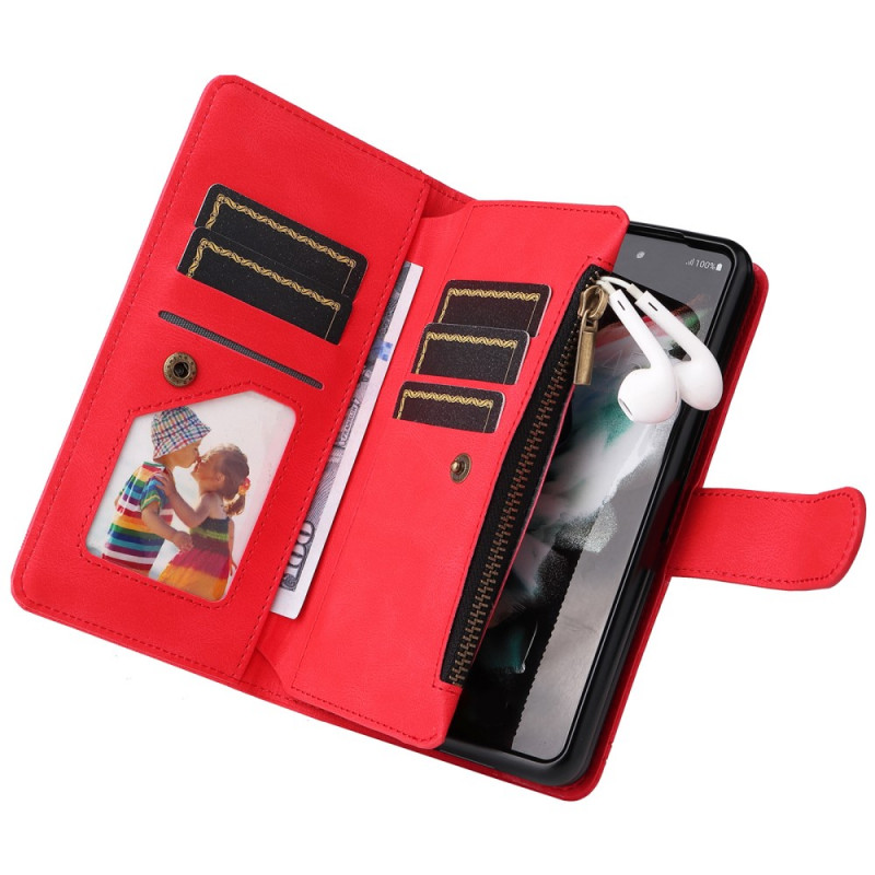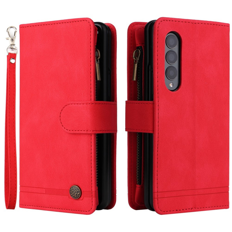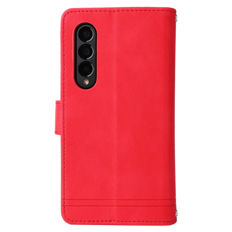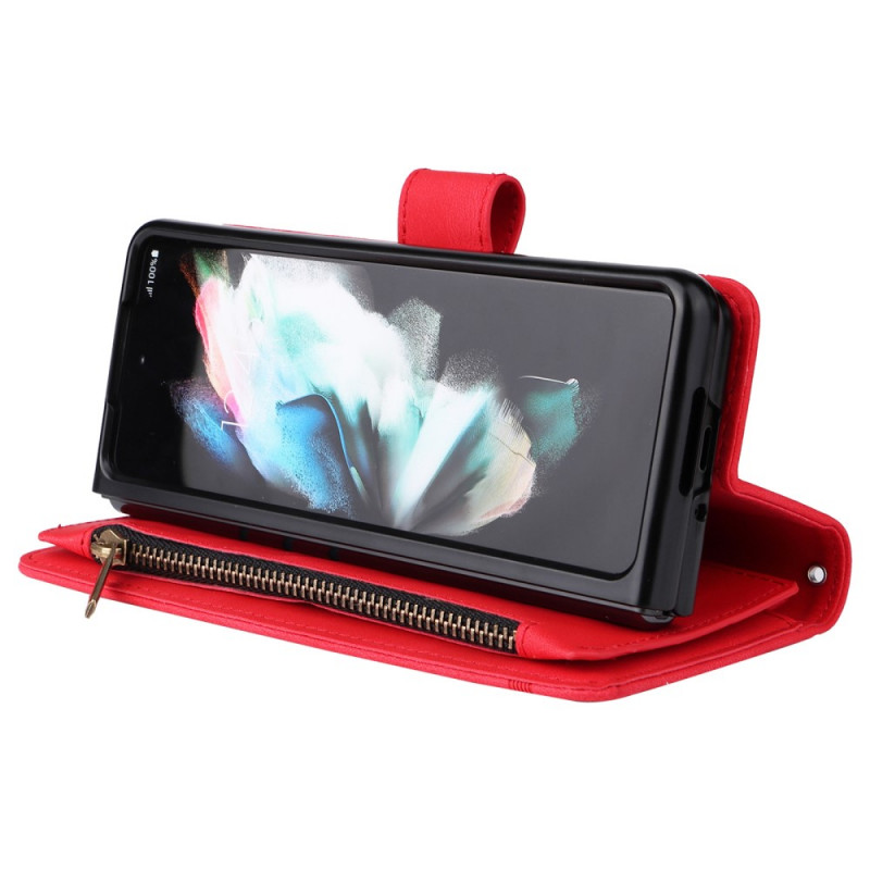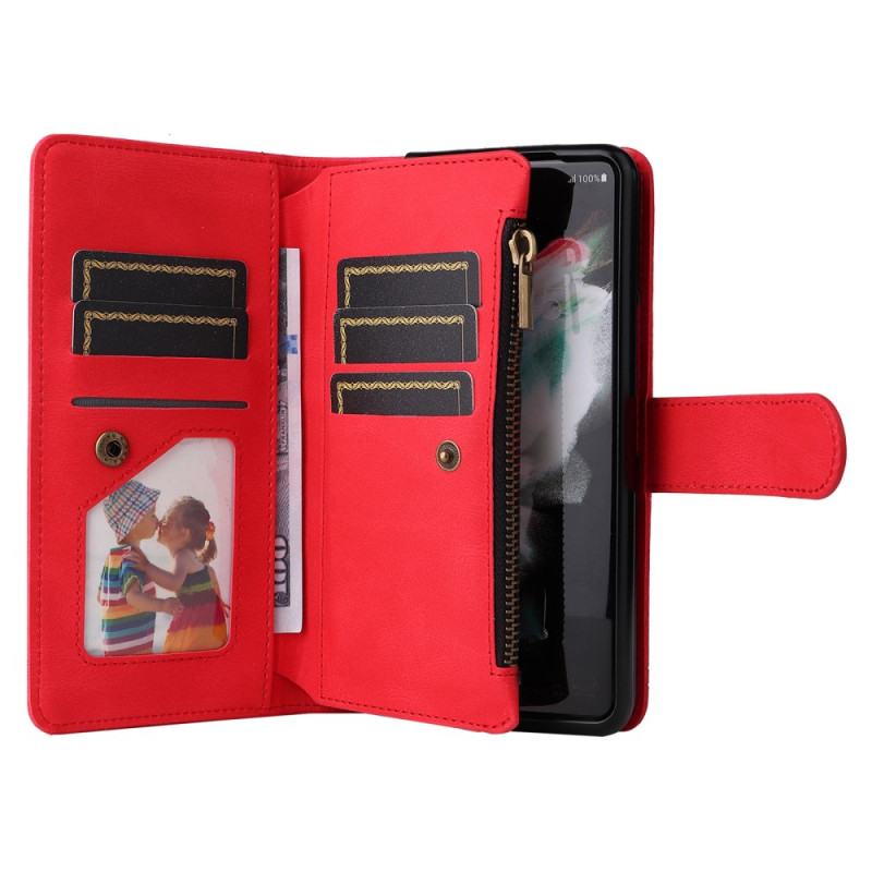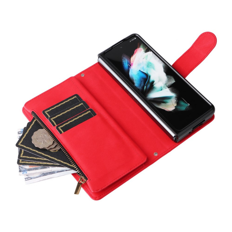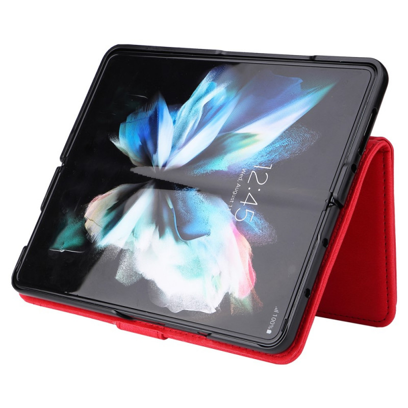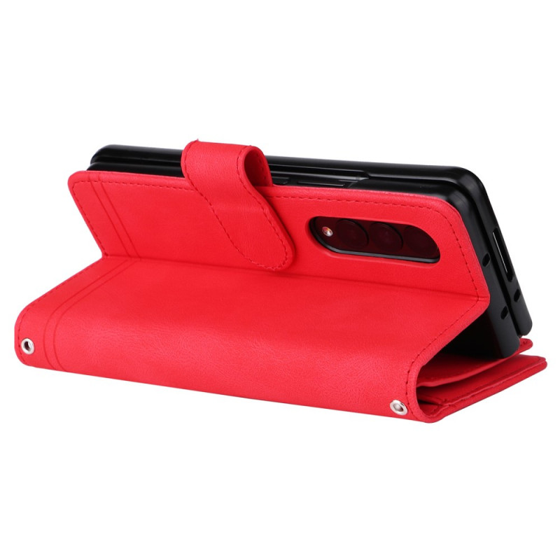 , joka sopii Samsung Galaxy Z Fold 3 5G -puhelimelle ja jossa on lukuisia korttipidikkeitä ja koristeniitti