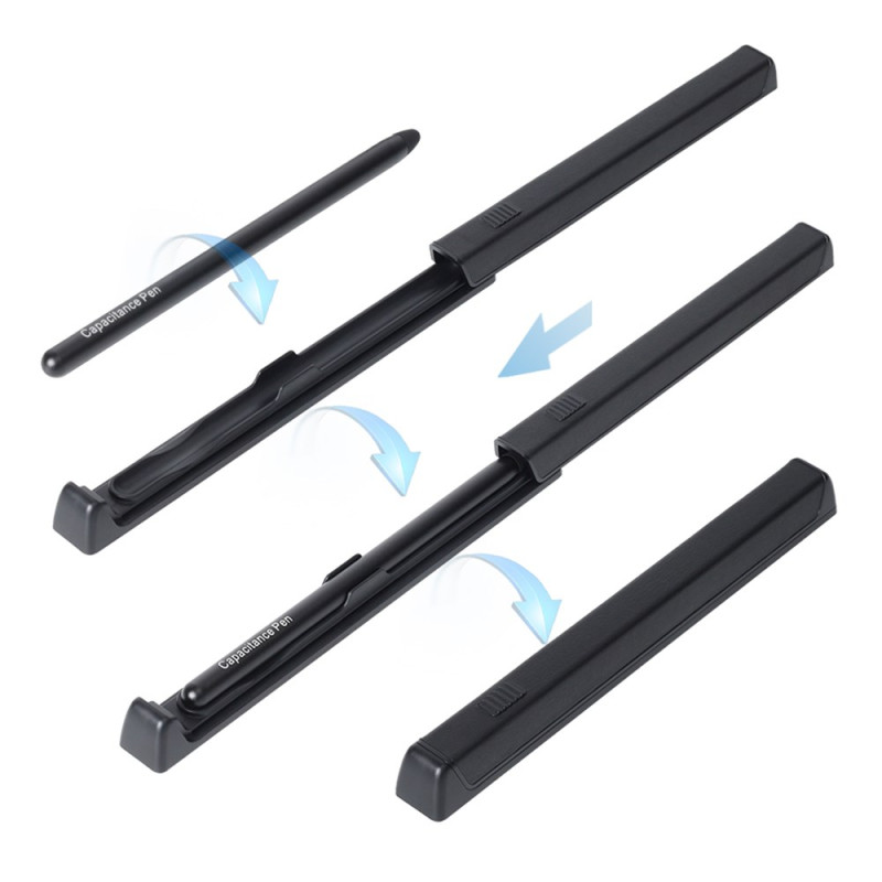Tutustu innovatiiviseen suojakoteloon Samsung Galaxy Z Fold -puhelimelle. Tässä kotelossa, jossa on säilytystila kapasitiiviselle kynälle ja liukuva magneettirakenne, yhdistyvät käytännöllisyys ja suojaus.