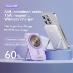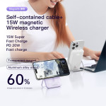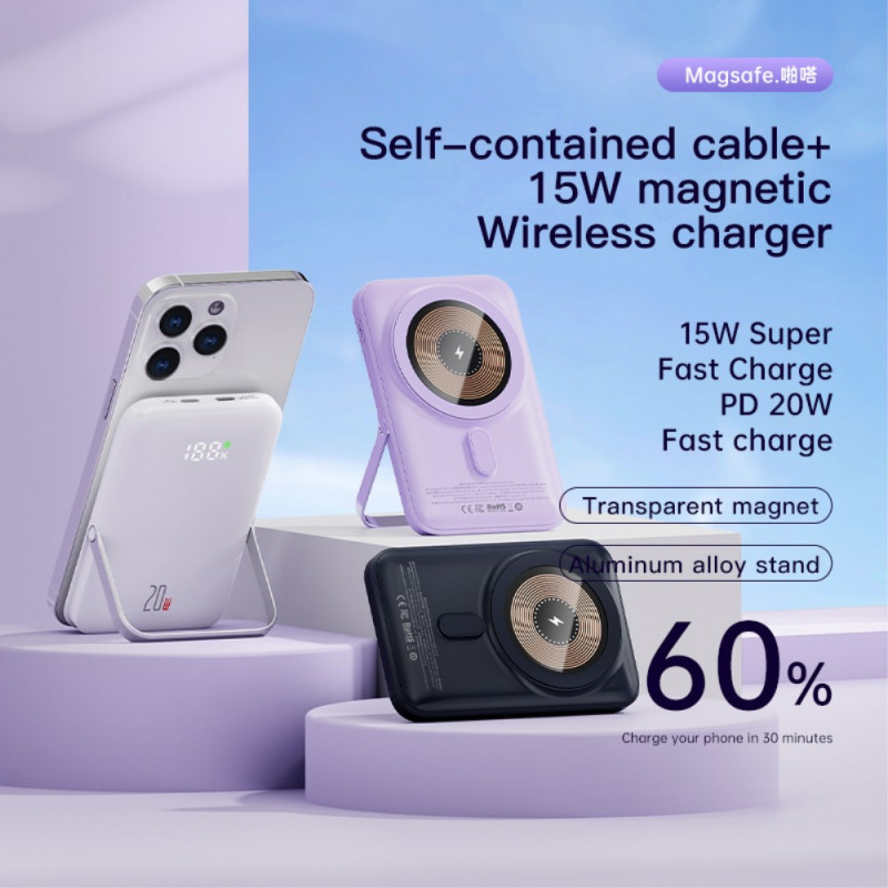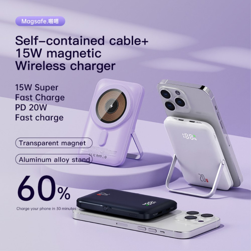 Käytännöllinen ja tehokas 10000mAh:n magneettinen ulkoinen akku kulkee mukanasi kaikkialle. Se kiinnittyy välittömästi yhteensopivaan älypuhelimeesi integroidun magneettimoduulin ansiosta ja alkaa latautua heti, kun kosketat sitä.