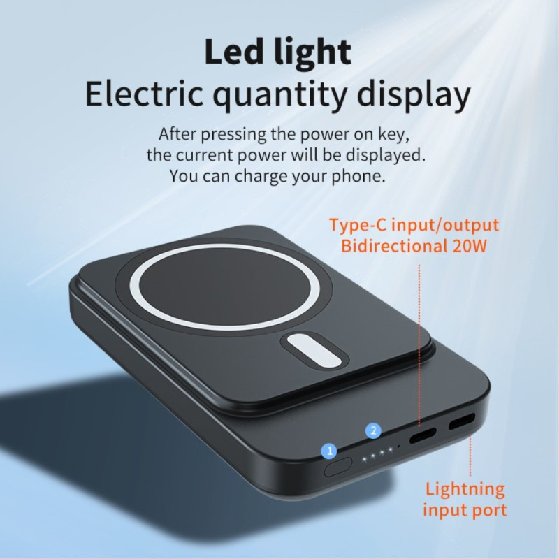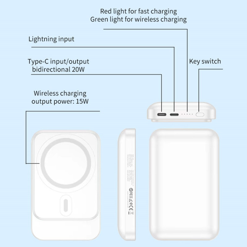 Yhdistä suorituskyky ja käytännöllisyys tässä magneettisessa 10000mAh ulkoisessa akussa. Siinä on jopa 15 W:n nopea langaton lataus, ja se kiinnittyy tukevasti yhteensopivien puhelinten takaosaan.