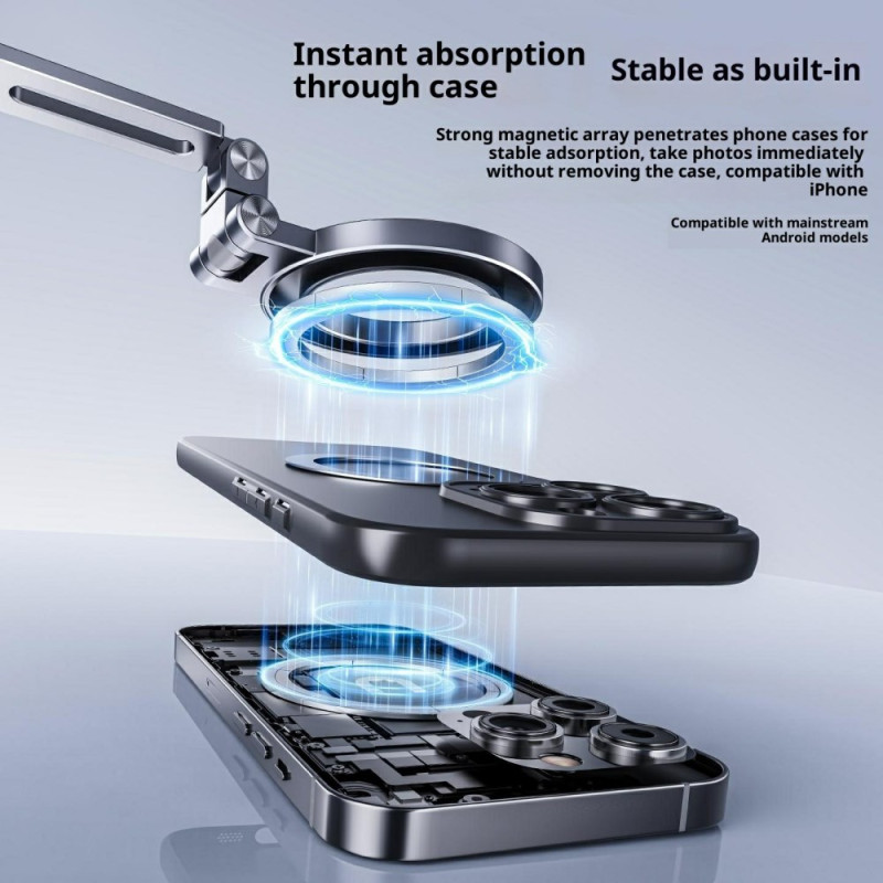 Subjektiivinen näkökenttä on nyt kuvattu ammattimaisen vakaasti, mikä vapauttaa sisällöntuottajan kädet. Tämä magneettinen kaulanauhakiinnitys on ihanteellinen ratkaisu POV (Point of View) -kuvaamiseen, joka tekee älypuhelimesta toimintakameran. Kiinnityksessä käytetään voimakkaita magneetteja, jotka varmistavat, että laite pysyy paikallaan myös dynaamisten liikkeiden aikana. Alumiiniseoksesta ja pehmeästä silikonista valmistettu kiinnike tarjoaa optimaalisen käyttömukavuuden pitkääkin käyttöä varten. Sen kulma on täysin säädettävissä, joten saat ihanteellisen perspektiivin vlogeihin ja opetusohjelmiin.