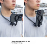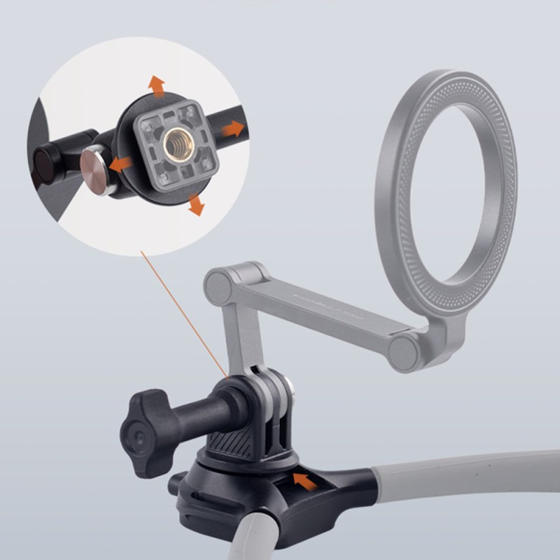 PGYTECHin POV-kiinnike on suunniteltu käyttäen korkealaatuisia teknisiä materiaaleja, ja se muuttaa kokemuksen immersiivisen sisällön luomisesta. Sen ruostumattomasta teräksestä valmistettu kaulaputki ja sisäinen alumiinirakenne takaavat suuren vakauden. Pystysuora 30 N:n magneettivoima takaa erittäin turvallisen puhelimen kiinnityksen myös liikkeessä. Kolmiosainen taittuva rakenne, jossa on iskuja vaimentava sarana, mahdollistaa tarkan ja vaivattoman kuvakulman säätämisen. Nopea siirtyminen muotokuvamuodosta vaakatasoon on vain napsautuksen päässä.