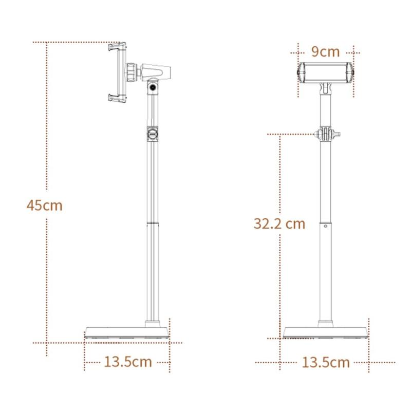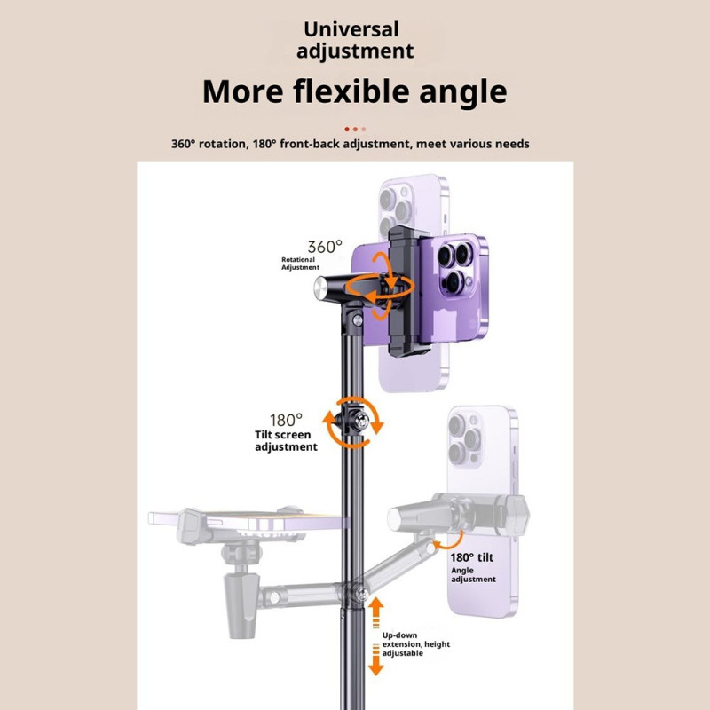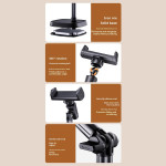 Tämä erityisesti toimistokäyttöön ja sisällön luomiseen suunniteltu jalusta tarjoaa vakauden ja monipuolisuuden, jota tarvitaan yläpuolelta kuvaamiseen. Laadukkaasta alumiiniseoksesta valmistettu jalusta on vakaa ja kestävä ja painaa noin 550 grammaa. Metallipylväs on ulosvedettävä, mikä tarjoaa monipuolisen asemoinnin vedenalaisiin kuvauksiin. livestream tai opetusohjelmia. Sen kompaktin rakenteen ansiosta se on helppo kuljettaa mukana ja asentaa minne tahansa. Se on yhteensopiva enintään 6 tuuman älypuhelinten kanssa ja tarjoaa optimaaliset katselukulmat säädettävän rakenteensa ansiosta.