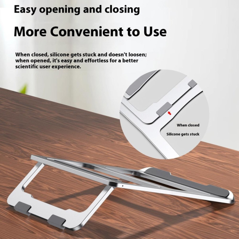 Käyttäjämukavuus ja laitteen optimoitu suorituskyky ovat tämän jalustan kaksi keskeistä toimintoa. Se on valmistettu paksuuntuneesta alumiiniseoksesta ja tarjoaa tukevan alustan matkapuhelimille ja enintään 17,3 tuuman tableteille. Avoin muotoilu edistää ilmankiertoa, mikä parantaa lämmön haihtumista. Nostamalla näyttöä se korjaa katselukulmaa, mikä vähentää tehokkaasti niskan ja silmien rasitusta. Sen kokoontaitettava, kevyt rakenne (260 g) tekee siitä helpon kuljettaa mukana toimisto- tai ulkokäyttöön.