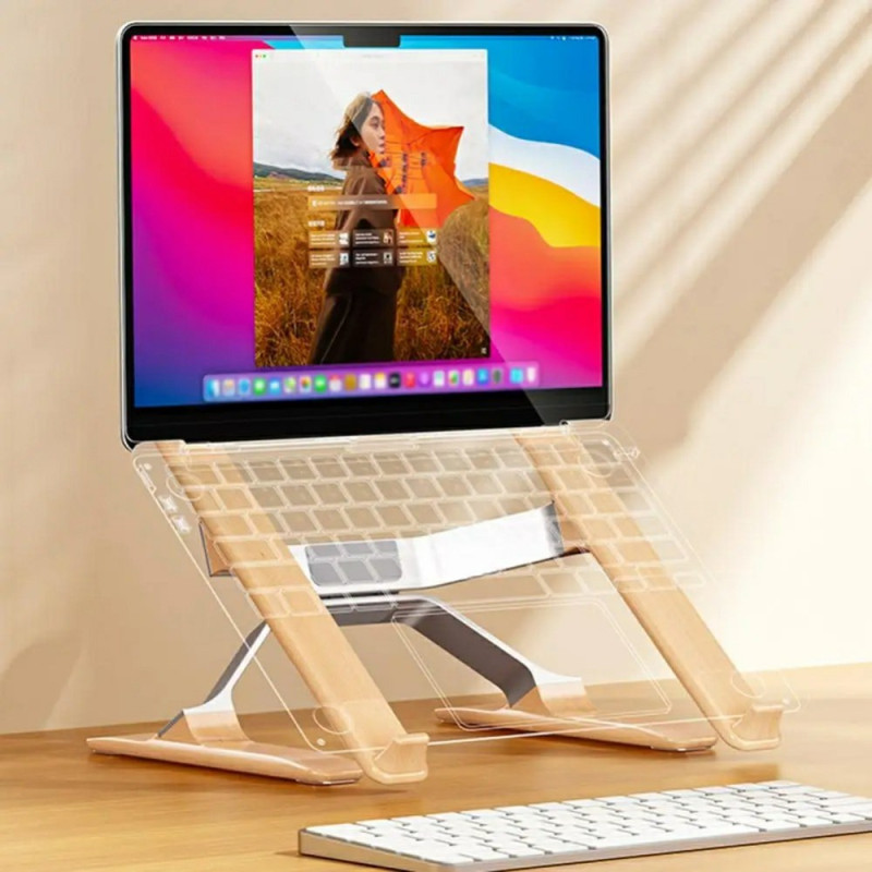 Säädettävässä P70W-jalustassa yhdistyvät tyylikäs muotoilu ja suorituskyky, ja se tarjoaa ergonomisen työskentelyasennon ja optimaalisen jäähdytyksen. Sen alumiini- ja massiivipuurakenne takaa erinomaisen vakauden ja kestävyyden. Korkeus- ja kulmasäätöjärjestelmänsä ansiosta se mukautuu tarpeidesi mukaan ja parantaa näkömukavuutta ja ryhtiä. Sen rei'itetty yläosa mahdollistaa ilman vapaan kierron, mikä estää laitteen ylikuumenemisen. Se on yhteensopiva 14-16 tuuman kannettavien tietokoneiden, tablettien ja grafiikkataulutietokoneiden kanssa, joten se on tärkeä jokapäiväinen lisävaruste.