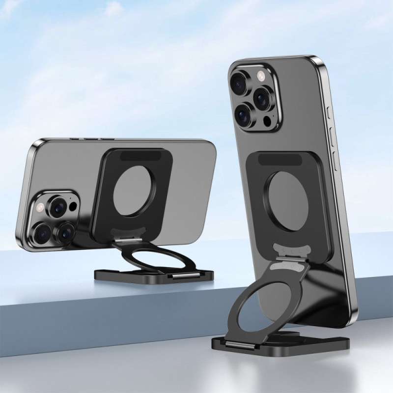 Kaksipuolinen magneettinen puhelinpidike tarjoaa sujuvan ja tyylikkään käyttökokemuksen ilmailualumiiniseoksen ja liukumattoman silikonirakenteen ansiosta. Sen kaksipuolinen magneettijärjestelmä mahdollistaa 360°:n kierron ja monikulmasäädön, joka sopii ihanteellisesti muotokuva- tai maisematilaan. Erittäin ohut (vain 10 mm kokoontaitettuna), se mahtuu helposti taskuun tai laukkuun. Vakaa, kevyt ja yhteensopiva kaikkien MagSafe-mallien kanssa, se sopii yhtä hyvin älypuhelimiin ja tabletteihin toimistokäyttöön, suoratoistoon, videopuheluihin tai käyttöön autossa.