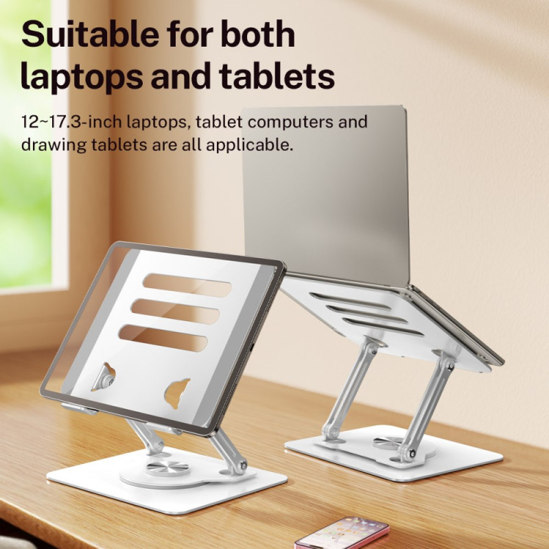 Tässä matkapuhelimen ja tabletin jalustassa yhdistyvät kestävyys ja helppokäyttöisyys sen hiiliteräsrakenteen ja 360° kääntyvän järjestelmän ansiosta. Se on yhteensopiva 12" - 17,3" laitteiden kanssa, ja sen avulla voit säätää korkeutta ja katselukulmaa ergonomisen, mukautettavan työpisteen luomiseksi. Sen avonaisen rakenteen ansiosta ilma pääsee kiertämään vapaasti, mikä takaa optimaalisen jäähdytyksen myös pitkäaikaisen käytön aikana. Se on kokoontaitettava ja helposti kuljetettava, ja se sopii täydellisesti mihin tahansa toimisto- tai kotiympäristöön, mikä takaa kestävän päivittäisen käyttömukavuuden.