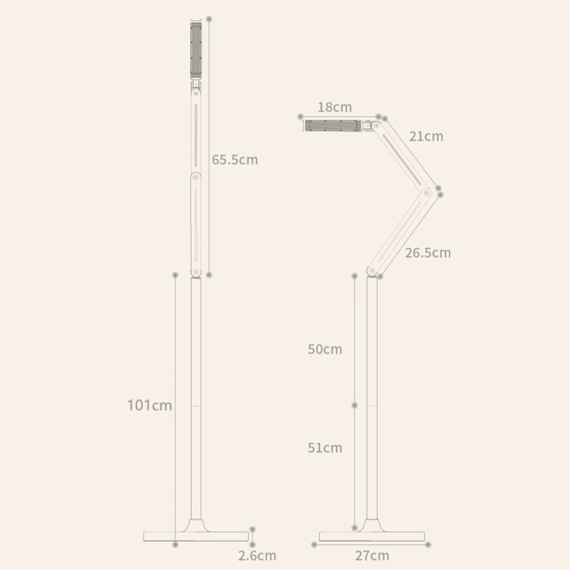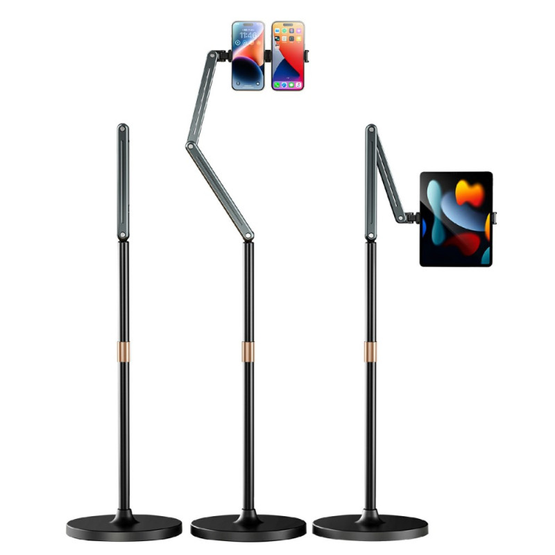 Boneruy-lattiajalusta on ihanteellinen ratkaisu suoratoistoon, verkkotunneille tai videoiden katseluun täysin vapaasti. Sen 360° kääntyvä muotoilu ja säädettävä korkeus 51-101 cm takaavat optimaalisen käyttömukavuuden, olitpa sitten makuulla, istumassa tai seisomassa. Alumiiniseoksesta, hiiliteräksestä, muovista ja silikonista valmistettu jalusta takaa vakauden ja kestävyyden. Sen säädettävään varteen mahtuu kaksi puhelinta samanaikaisesti tai tabletti joko vaaka- tai pystysuorassa asennossa. Kokoontaitettava ja tyylikäs, se sopii kaikkiin ympäristöihin ja jokapäiväiseen käyttöön.