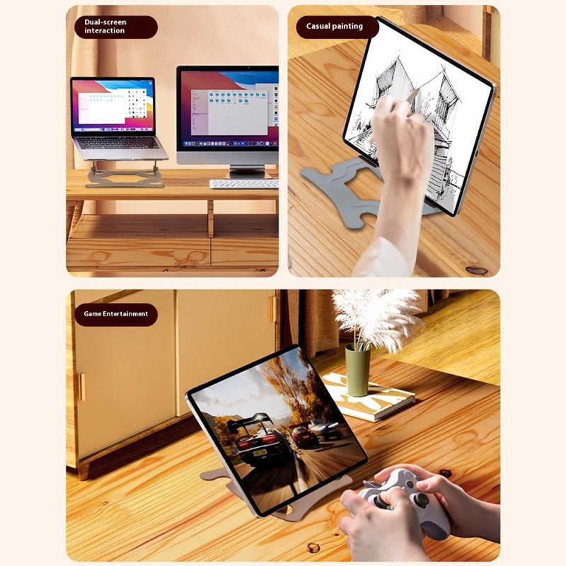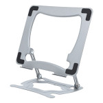 Korkeussäädettävä kokoontaitettava jalusta on ihanteellinen ergonominen ratkaisu asennon ja työskentelymukavuuden parantamiseen. Jatkuvan säätöjärjestelmänsä ansiosta se asettaa matkapuhelimen tai tabletin täydelliseen kulmaan. Sen rei'itetty rakenne takaa erinomaisen ilmankierron ja estää ylikuumenemisen pitkäaikaisen käytön aikana. Se on valmistettu tukevasta hiiliteräksestä, jossa on liukastumista estäviä silikonielementtejä, ja se tarjoaa moitteettoman vakauden jopa 17,3 tuuman laitteille. Kokoontaitettava ja helppo kuljettaa, joten se sopii yhtä hyvin toimistoon.