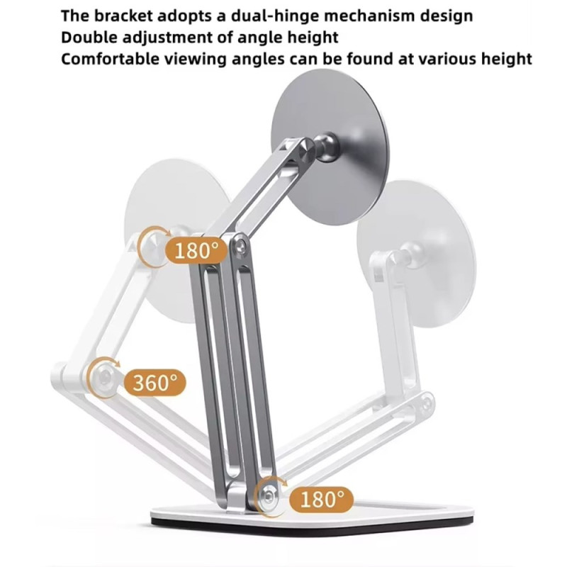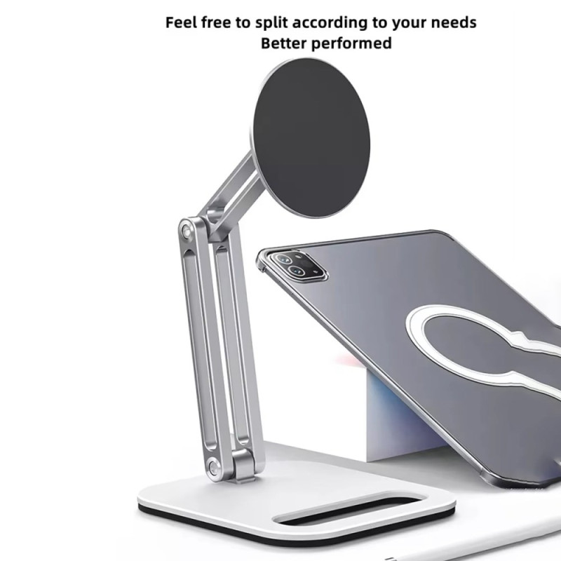 Boneruy C47 -magneettinen tablettiteline tarjoaa täydellisen yhdistelmän tukevuutta, tyylikkyyttä ja helppokäyttöisyyttä. Huippuluokan alumiiniseoksesta valmistettu jalusta tarjoaa huomattavan vakauden 5-12,9 tuuman älypuhelimille ja tableteille. Sen kahden nivelletyn varren ansiosta voit helposti säätää korkeutta ja katselukulmaa työskennelläksesi, piirtäessäsi tai katsellaksesi videoita ergonomisessa asennossa. Sen tarkka ja tehokas magneettijärjestelmä takaa turvallisen, tärinättömän otteen. Kokoontaitettava ja kompakti, se on helppo ottaa mukaan ja säilyttää huomaamattomasti, kun sitä ei käytetä.