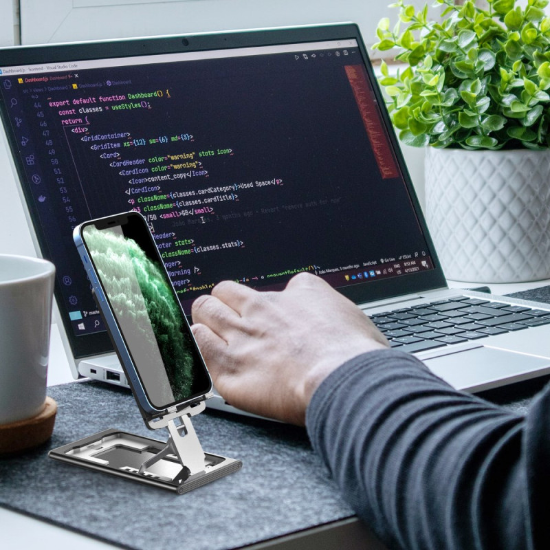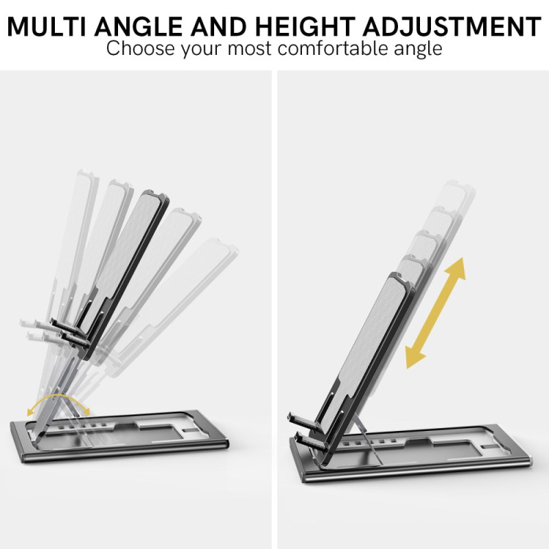 AHASTYLE-pöytäteline tarjoaa tyylikkään ja ergonomisen ratkaisun laitteiden päivittäiseen pitämiseen. Pika-avausjärjestelmänsä ja useiden säätökulmiensa ansiosta se helpottaa ihanteellisen katseluasennon omaksumista työskentelyä, opiskelua tai videoiden katselua varten. Kestävästä alumiiniseoksesta valmistettu jalusta tarjoaa erinomaisen vakauden ja on samalla kevyt ja kestävä. Sen kokoontaitettavan rakenteen ansiosta sitä on helppo kuljettaa ja säilyttää. Se on yhteensopiva kannettavien tietokoneiden, tablettien ja älypuhelimien kanssa, nostaa näytöt silmien tasolle ja auttaa vähentämään niskan väsymistä.