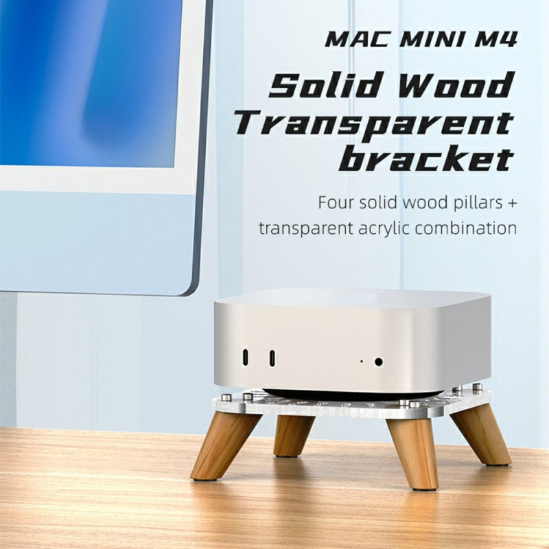 WoodStand-pystyteline Mac Mini M4:lle ja M4 Prolle tarjoaa täydellisen yhdistelmän estetiikkaa ja toiminnallisuutta. Se on suunniteltu yksinomaan 2024-mallia varten, ja se nostaa laitetta 40 mm, mikä parantaa ilmankiertoa ja optimoi jäähdytyksen. Sen rakenne, jossa yhdistyvät neljä massiivipuujalkaa ja 5 mm:n akryylilevy, takaa vakauden ja tyylikkyyden. Sekä jalustaan että jalkoihin on integroitu liukumattomat pehmusteet, jotka takaavat täydellisen istuvuuden. Jokainen kappale on kiillotettu huolellisesti käsin, jotta se saisi ensiluokkaisen viimeistelyn, joka sopii erinomaisesti modernin toimiston sisustukseen.