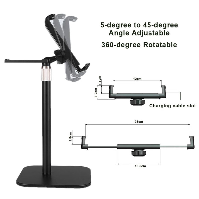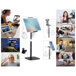 Tämä säädettävä pöytäteline tarjoaa käytännöllisen ja ergonomisen ratkaisun älypuhelimen tai tabletin vapaaseen käyttöön. ABS:stä, PC:stä ja metallista valmistettu jalusta tarjoaa erinomaisen vakauden ja on samalla kestävä jokapäiväiseen käyttöön. Sen säädettävän rakenteen ansiosta voit mukauttaa katselukulmaa ja -korkeutta optimaalisen mukavuuden saavuttamiseksi, katselitpa sitten videota, seurasit opetusta tai surffasit internetissä. Jalustan pohjassa olevan aukon ansiosta se on helppo ladata käytön aikana, ja integroitu kuulokepidike auttaa pitämään työpöytäsi selkeänä ja järjestyksessä. Se on yhteensopiva 4-11 tuuman laitteiden kanssa, joten se on välttämätön lisävaruste työtilaasi.
