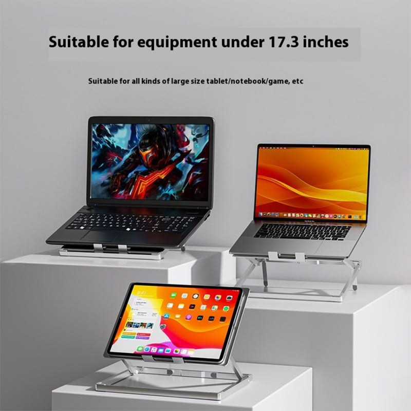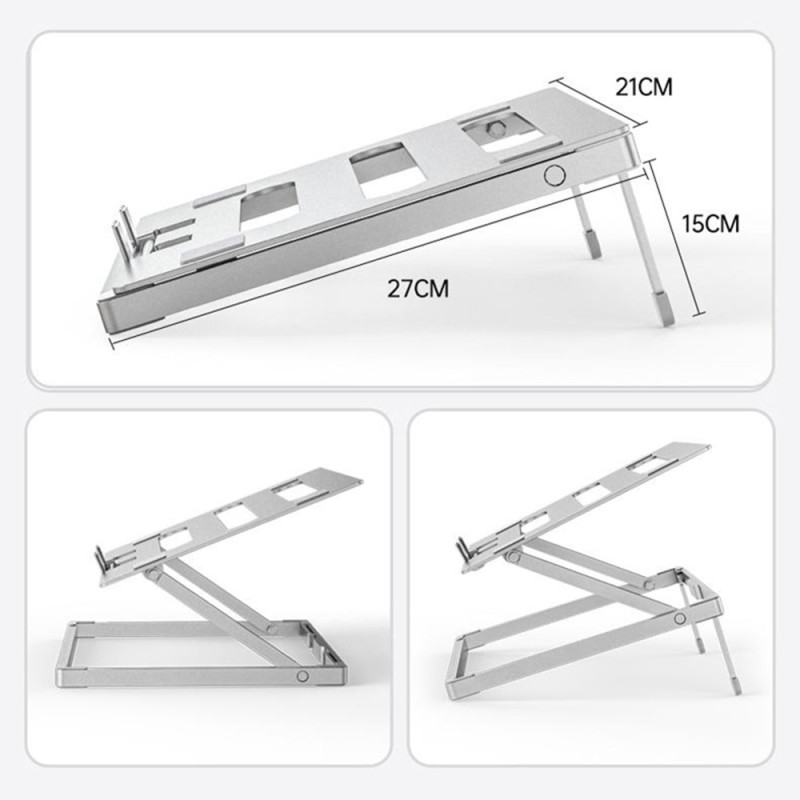 Tämä säädettävä matkapuhelimen jalusta on suunniteltu parantamaan työskentelymukavuuttasi sen ergonomisen korotuksen ja säädettävän kulman ansiosta. Tukevasta alumiiniseoksesta valmistettu jalusta tarjoaa erinomaisen vakauden ja suuren kantavuuden ilman notkahdusriskiä. Sen rei'itetty rakenne mahdollistaa ilman vapaan kierron ylikuumenemisen estämiseksi myös pitkäaikaisen käytön aikana. Kevyt ja kokoontaitettava, joten se on helppo ottaa mukaan toimistosta kotiin. Ihanteellinen parantamaan ryhtiä ja vähentämään selän, niskan ja käsivarsien jännitystä.