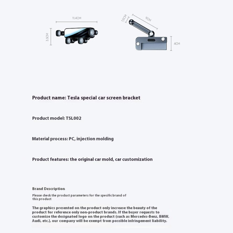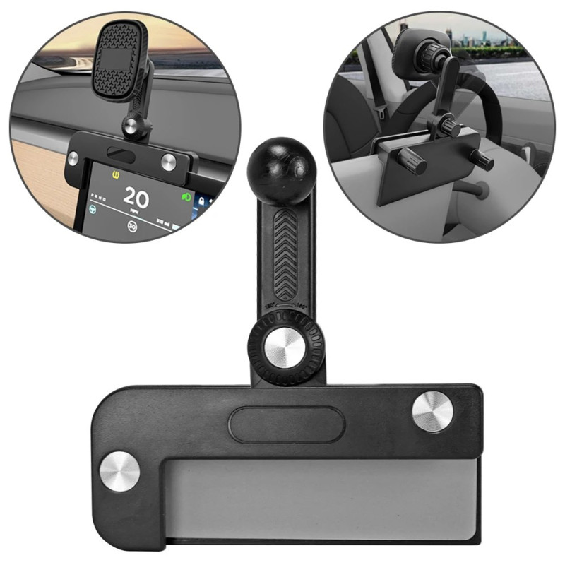 Elegantti painovoimainen puhelimen kiinnike, joka on suunniteltu erityisesti Tesla Model 3:n tai Model Y:n ripustettua näyttöä varten. Helppo asennus vahingoittamatta näyttöä, säädettävä varsi ja vapaa 360° kierto. Tärinää ehkäisevä muotoilu pitää puhelimesi turvassa ajon aikana.