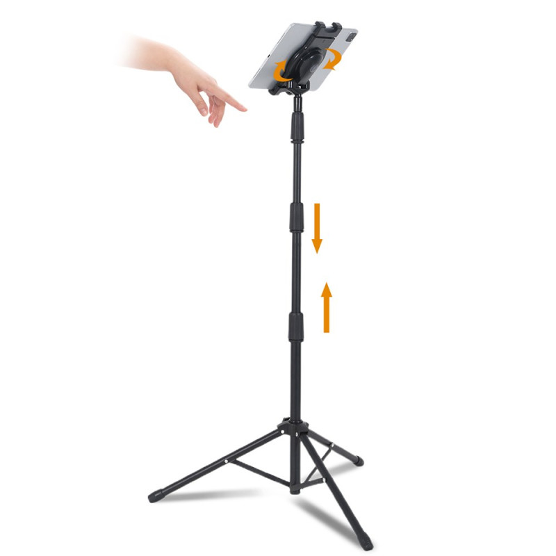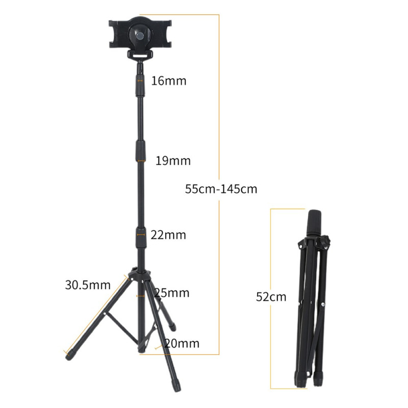 Yleispätevä kolmijalkainen jalusta, jossa on 360° kierto ja 180° kallistus 7" - 10,5" tableteille ja älypuhelimille. Säädettävä korkeus 55 mm:stä 145 mm:iin, tukeva, kevyt metallirakenne, taittuu kokoon helppoa kuljetusta varten. Ihanteellinen videoihin...