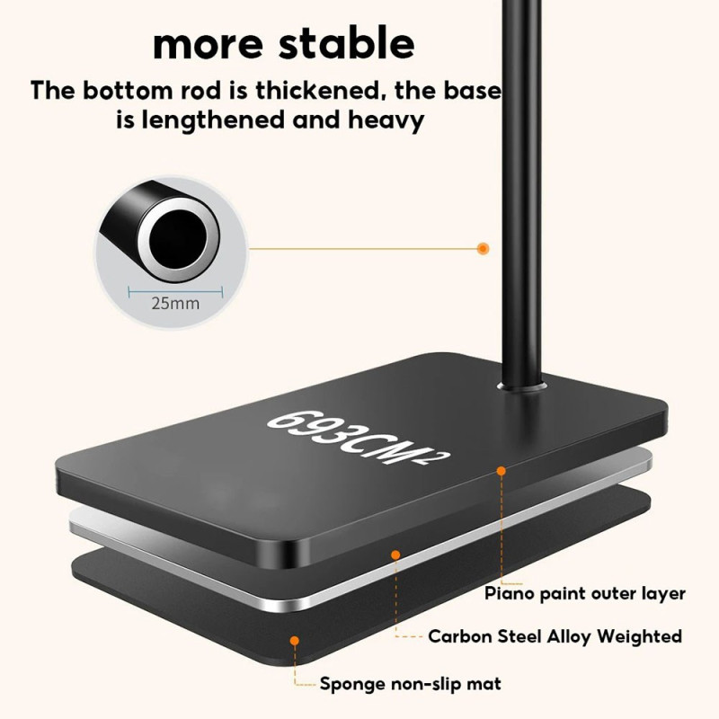 Nauti optimaalisesta mukavuudesta tämän teleskooppisen lattiatelineen avulla, jonka korkeus on säädettävissä jopa 1,6 metriin. Sen joustava varsi ja 360°:n kierto takaavat laitteen täydellisen sijoittelun. Vankka teräs- ja ABS-rakenne takaa maksimaalisen vakauden.