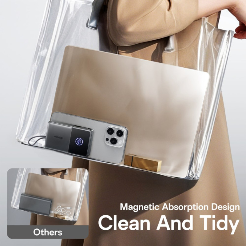 JOYROOM JR-PR1 ulkoinen akku on täydellinen yhdistelmä sertifioitua turvallisuutta ja sisäänrakennettuja toimintoja. Siinä on 70 cm:n sisäänvedettävä Type-C-kaapeli, joka poistaa ulkoisten kaapeleiden aiheuttaman sotkun liikkeellä ollessa. Tämä 10000 mAh:n yksikkö tuottaa huippunopean 22,5 W:n lähtötehon, joka takaa, että laitteesi latautuvat nopeasti ja tehokkaasti. Luotettavuuden takaavat 9 turvasuojausta ja täydellinen sertifiointi (FCC, CE, UL jne.). Sen digitaalinen LED-näyttö mahdollistaa lataustasojen tarkan seurannan, ja sen PC+ABS-paloturvamateriaalirakenne takaa kestävyyden.