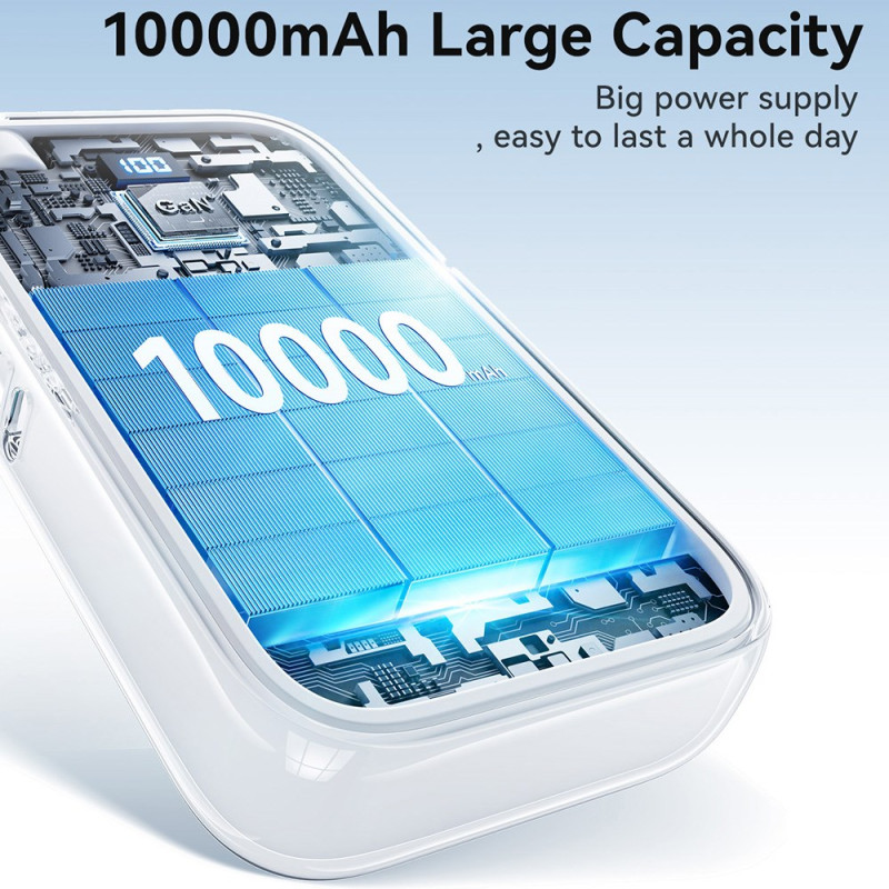 Nopein ja monipuolisin virtaratkaisu kaikkiin mobiiliekosysteemeihin on nyt saatavana pienoiskoossa. Tämä 10000 mAh:n ulkoinen akku sisältää kaksi 70 cm:n sisäänvedettävää kaapelia (Lightning ja Type-C), jotka tarjoavat universaalin ja välittömän yhteensopivuuden. Se tuottaa maksimissaan 35 W:n lähtötehon, mikä takaa laitteidesi ultranopean latauksen, ja itse akun lataus on 27 W. Sen muotoilussa on innovatiivinen USB-L-kahva, joka lisää siirrettävyyttä. Suuri digitaalinäyttö näyttää jäljellä olevan akun käyttöiän tarkan prosenttiosuuden reaaliajassa, mikä mahdollistaa akun käyttöiän optimaalisen hallinnan.