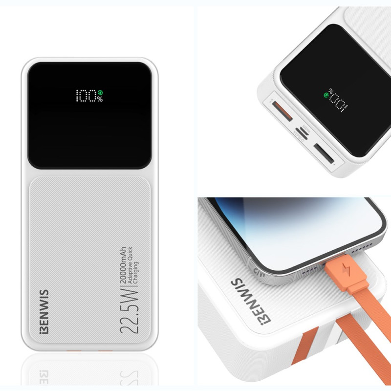 Tämän organisaation tehokkuutta varten suunnitellun BENWIS-ulkoisen akun ensisijaisena tavoitteena on, että kaikki laitteet saavat välittömästi energiaa. Sen kapasiteetti on 20 000 mAh, ja se takaa useita latauksia. Muotoiluun on integroitu USB-C- ja Lightning-kaapelit, joten ylimääräisiä johtoja ei tarvitse kantaa mukana. Lähtöteho on 22,5 W, mikä takaa nopean latauksen porttien ja integroidun Type-C-kaapelin kautta. Sen älykäs hallintajärjestelmä suojaa liitettyjen laitteiden terveyttä. Tarkka LED-näyttö pitää sinut ajan tasalla akun kestosta, ja koko paketti on eurooppalaisten turvallisuusstandardien mukainen.