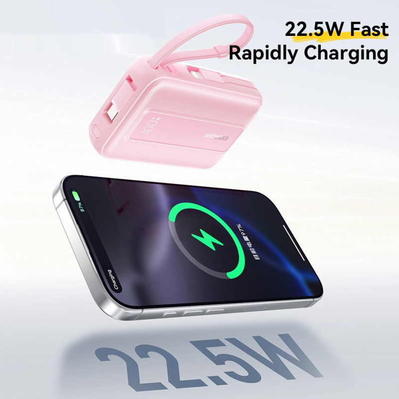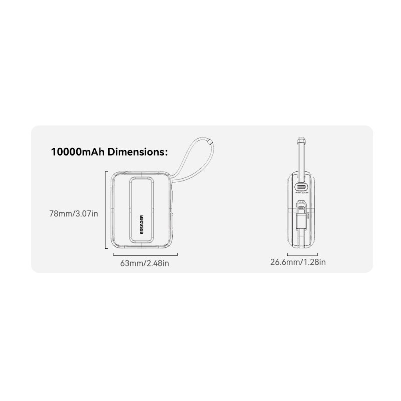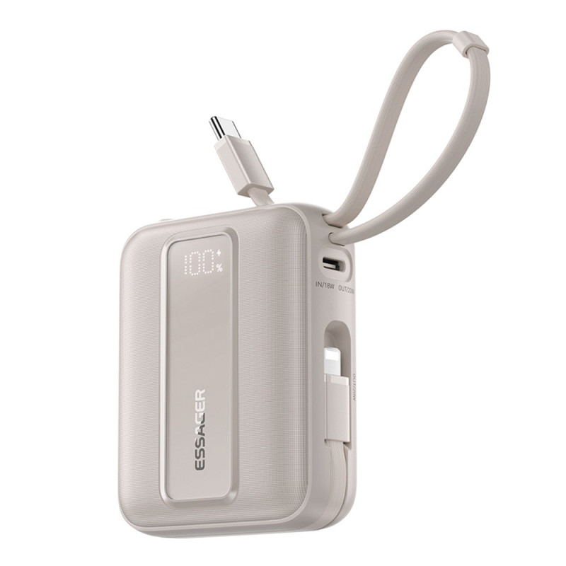 Laitteiden optimoitu hallinta ja monistandardilataus ovat nyt saatavilla kompaktissa muodossa. Tämä ESSAGER 10000mAh ulkoinen akku poistaa sekaannuksen Type-C- ja Lightning-kaapeleiden integroinnin ansiosta, mikä takaa universaalin yhteensopivuuden. Se tuottaa jopa 22,5 W pikalataustehoa, mikä mahdollistaa jopa kolmen laitteen lataamisen samanaikaisesti. Järjestelmä sisältää 7 piirisuojakerrosta ja älykkään lämpötilansäädön turvallisen ja luotettavan latauksen takaamiseksi. Älykäs digitaalinen näyttö tarjoaa selkeän ja tarkan akun käyttöiän seurannan. Järjestelmä on CE- ja RoHS-standardien mukainen, mikä osoittaa sen luotettavuuden Euroopan markkinoilla.