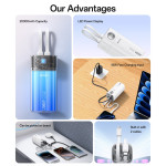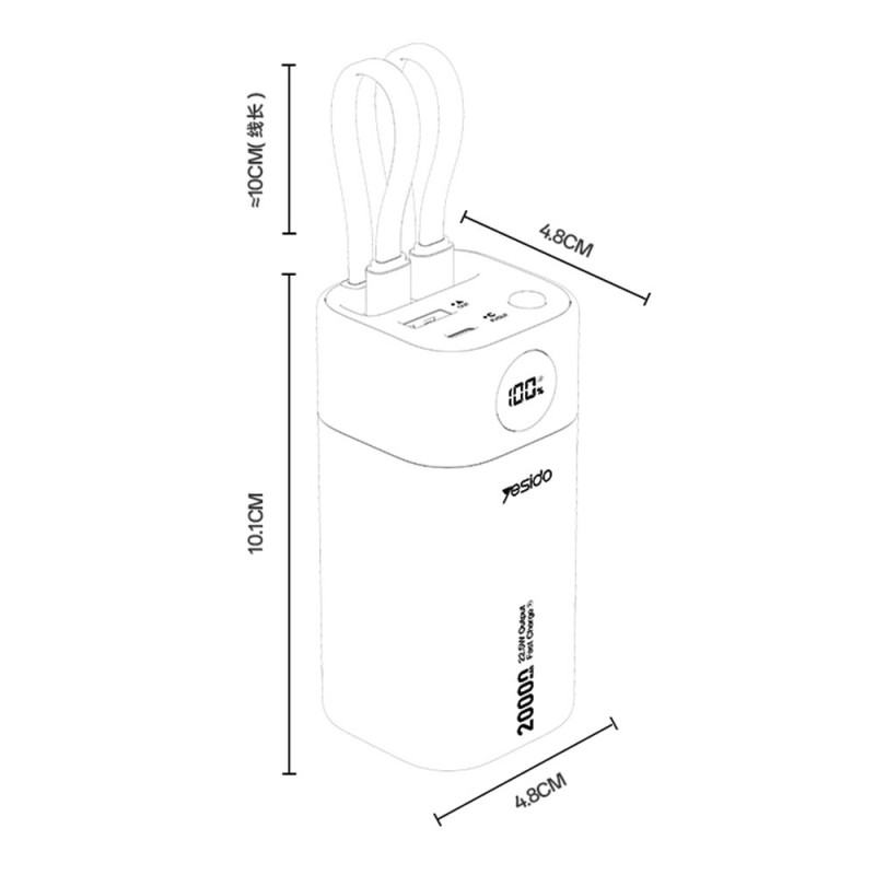 Massiivisen virtalähteen ja ylivoimaisen kennoteknologian yhdistäminen tekee tästä YESIDO-ulkopuolisesta akusta valinnanvaraisen laitteen. 20000mAh:n kapasiteetin ja huipputehokkaiden 21700-kennojen ansiosta se takaa poikkeuksellisen kestävyyden ja energiatiheyden. Muotoilu sisältää kaksi kaapelia (USB-C ja Lightning), jotka tukevat jopa 22,5W, mikä poistaa lisävarusteiden tarpeen. Se voi ladata neljä laitetta samanaikaisesti. Digitaalinen näyttö antaa välittömän lukeman akun tilasta. Laite on valmistettu kestävästä ABS-materiaalista kompaktin siirrettävyyden vuoksi, ja se on CE-sertifioitu Euroopan markkinoille.