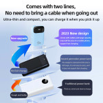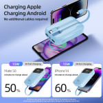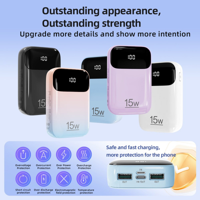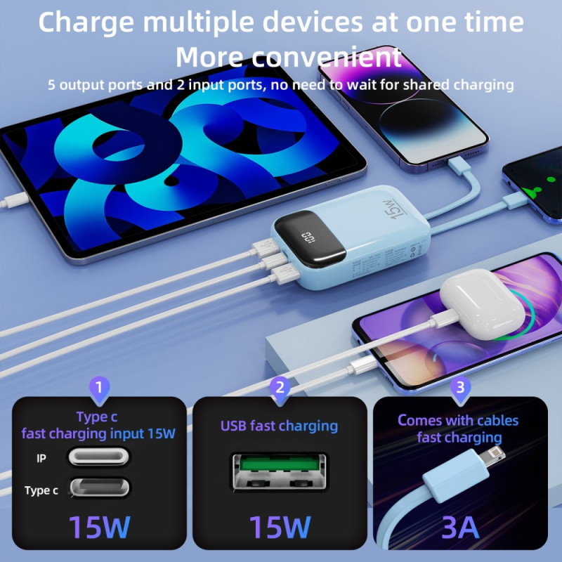 Riippuvuus ulkoisista kaapeleista poistuu tällä ROISKINin ulkoisella akulla, joka on suunniteltu yhteiseen riippumattomuuteen ja tehokkuuteen. Sen valtava 20 000 mAh:n kapasiteetti takaa virran useille laitteille päiviksi. Muotoilu integroi Type-C- ja Lightning (iP) -kaapelit, mikä tarjoaa välittömän yhteensopivuuden kaikkien ekosysteemien kanssa. Viiden käytettävissä olevan lähdön (portit ja kaapelit) ansiosta tämä laite mahdollistaa suuren määrän laitteiden lataamisen samanaikaisesti. Sen PC-rakenne tarjoaa miellyttävän kosketuksen ja älykäs suojaus takaa luotettavan käytön. Laite on CE-RoHS-sertifioitu, mikä vahvistaa, että se on eurooppalaisten standardien mukainen.