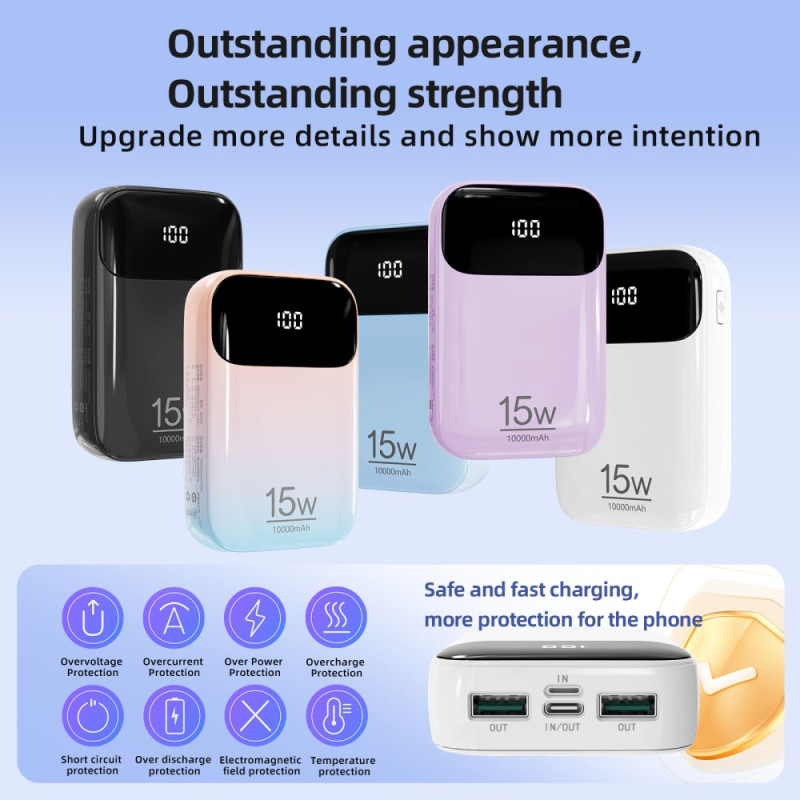 Ristiriita langallisen latauksen ja käden mukavuuden välillä on ratkaistu tämän ROISKIN-laitteen ergonomisella suunnittelulla. Tämä 10000mAh:n ulkoinen akku integroi kaksi latauskaapelia (Type-C ja Lightning), jotka on suunniteltu 180 asteen käyttöön, eivätkä ne koskaan estä laitteen käyttöä. Viiden käytettävissä olevan lähdön ansiosta se voi ladata useita laitteita samanaikaisesti. Suuren, selkeän digitaalinäytön ansiosta akun käyttöikää on helppo seurata. Laite on suojattu yhdeksällä älykkäällä suojaustasolla, ja se on eurooppalaisten CE-RoHS-standardien mukainen.