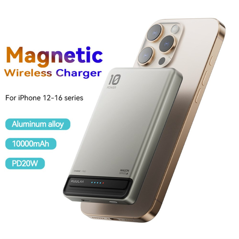 Kun tarvitset keveyttä ja itsenäisyyttä liikkeellä, tämä KUULAA-ulkoinen akku on täydellinen työkalu. Se on vain 12,8 mm paksu ja tarjoaa 10000 mAh:n kapasiteetin useita latauksia varten. 15W langaton tekniikka takaa yhteensopivien laitteiden nopean latauksen. Tehokas N52-magneetti takaa erittäin turvallisen magneettikiinnityksen myös liikkeessä. Alumiiniseoksesta ja paloturvallisesta muovista valmistetussa laitteessa on ylikuumenemis- ja oikosulkusuojaus. Se on CE- ja RoHS-sertifioitu, mikä vahvistaa sen luotettavuuden Euroopan markkinoilla.
