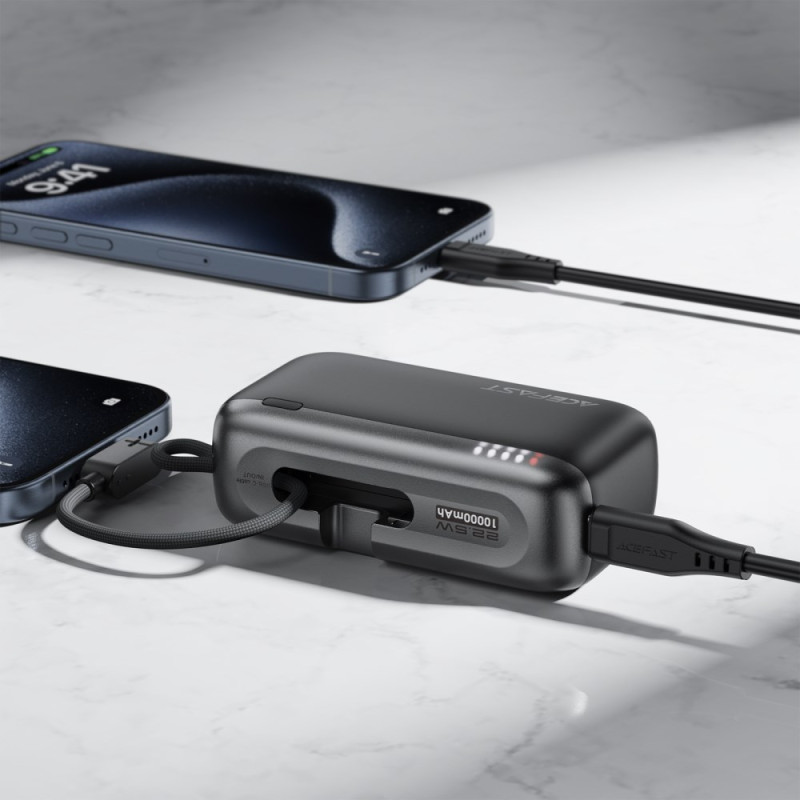 Tässä pienikokoisessa ulkoisessa akussa yhdistyvät teho ja käytännöllisyys, joten voit ottaa sen mukaasi kaikkialle. Se tarjoaa 10000 mAh:n energiavarastollaan mukavan energiareservin ja on samalla kevyt ja helppo sujauttaa taskuun. Sen sisäänvedettävän USB-C-kaapelin ansiosta ylimääräisiä lisävarusteita ei tarvitse kantaa mukana, ja 22,5 W:n pikalataus takaa tehokkaan virransyötön yhteensopiville laitteille. LED-näytön avulla voit tarkistaa energiatasot yhdellä silmäyksellä, joten voit pysyä viileänä koko päivän.