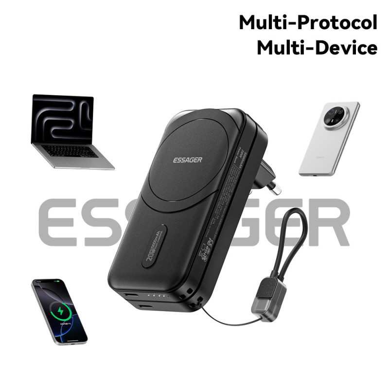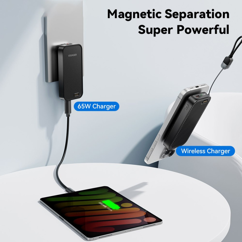 Tässä matkasovittimessa yhdistyvät kolme keskeistä toimintoa kompaktissa muodossa: kansainvälinen laturi, ulkoinen akku ja langaton latausasema. Sen modulaarinen, pinottava muotoilu helpottaa kuljettamista, ja 5000 mAh:n akku tarjoaa kätevän virtareservin, kun olet liikkeellä. GaN-teknologian ansiosta jopa 65 W:n pikalataus Type-C-portin kautta tarjoaa tehokasta virtaa monenlaisille laitteille. Taitettavat pistokkeet ja maailmanlaajuinen yhteensopivuus helpottavat käyttöä ulkomailla, ja sisäänrakennetut suojaukset takaavat turvallisen käytön.