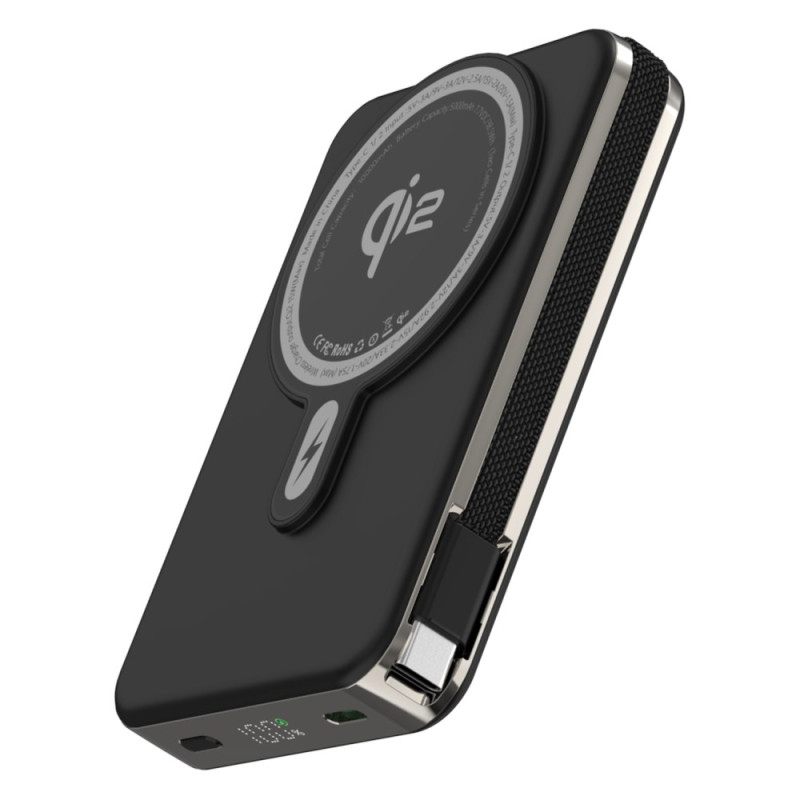 Tässä ulkoisessa magneettiparistossa yhdistyvät teho ja monipuolisuus kompaktissa muodossa, joka on suunniteltu jokapäiväiseen käyttöön. Qi2-teknologian ansiosta se tarjoaa nopean langattoman latauksen jopa 15 W:n teholla, ja sen Type-C-portit mahdollistavat langallisen latauksen jopa 35 W:n teholla yhteensopiville laitteille. Sen 10 000 mAh:n kapasiteetti tarkoittaa, että se voidaan ladata useita kertoja, ja sen integroitu jalusta tekee sen käytöstä mukavampaa myös liikkeellä ollessa. Digitaalisen näytön ansiosta energiatasoja on helppo seurata, ja integroidun kaapelin ansiosta voit käyttää sitä heti ilman lisävarusteita.