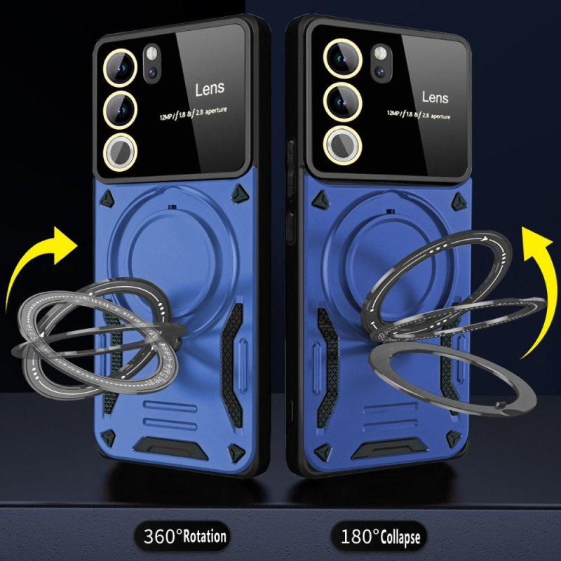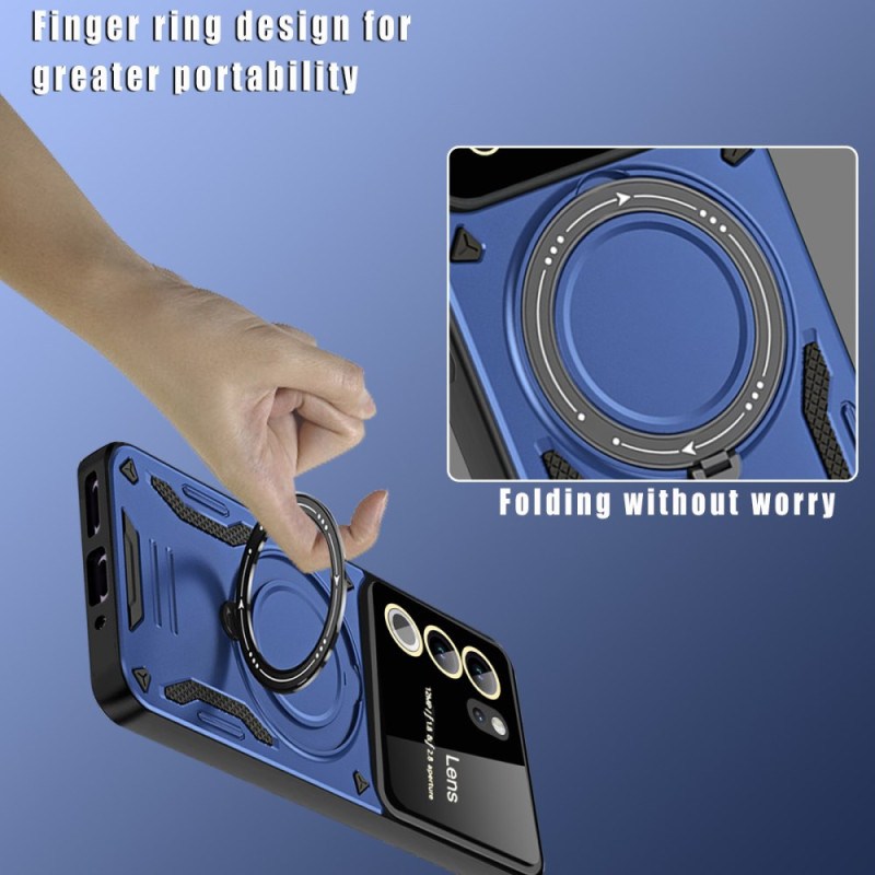 Hybridi suojakotelo, jossa yhdistyvät tyyli ja toiminnallisuus. Sisältää integroidun pyörivän jalustan handsfree-katselua varten, yhteensopiva langattoman MagSafe-latauksen kanssa. Vahvistettu suoja kolhuilta ja naarmuilta, korotetut reunukset näytölle ja kameralle.