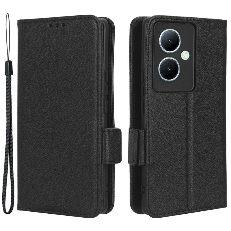Tyylikäs lompakkokotelo kuvioidusta PU-nahasta vivo älypuhelimelle. Siinä on turvallinen magneettilukko, useita lokeroita korteille ja käteiselle sekä handsfree-tuki. Integroitu suoja jokapäiväisiä kolhuja vastaan, mukana käsivyö.