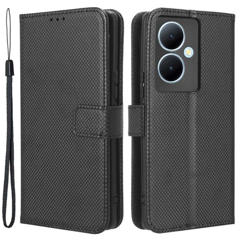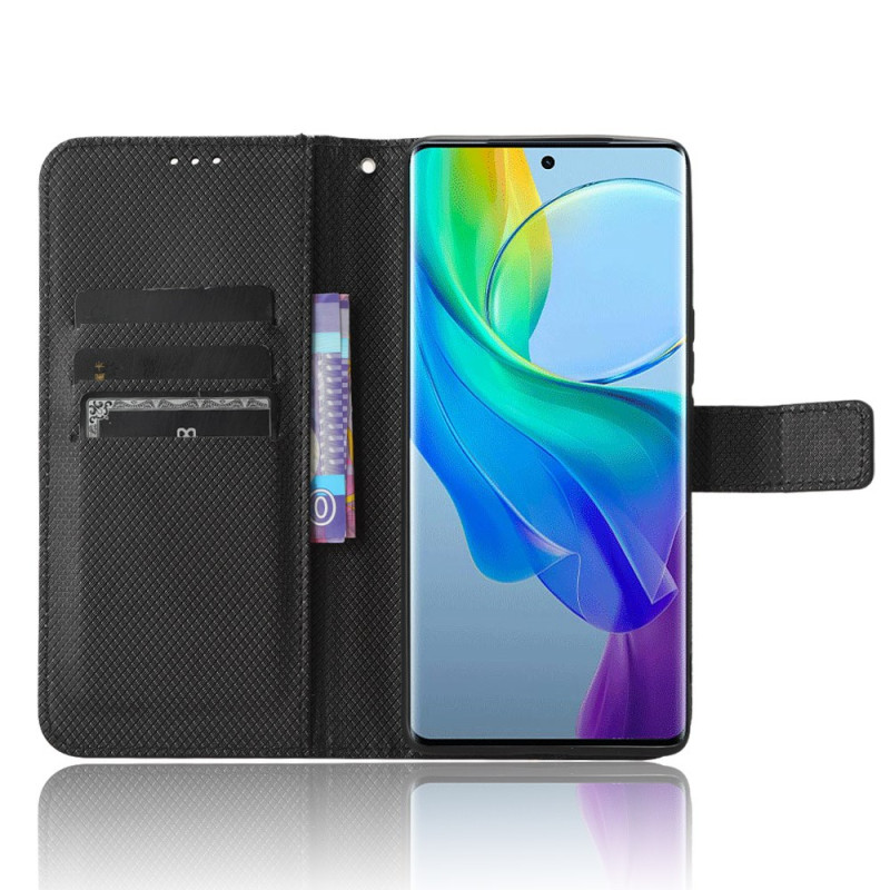 Tyylikäs lompakkokotelo, jossa on hienostunut timanttinen rakenne Vivo V29 Lite 5G -puhelimelle. Sisältää korttipaikat, käteistaskun ja integroidun taitettavan jalustan handsfree-katseluun.