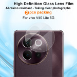 Suojaa Vivo V40 Lite 5G -puhelimen linssi tällä 2 erittäin läpinäkyvän karkaistun lasikalvon paketilla. Helppo asennus ilman kuplia, naarmunkestävyys ja likaantumisenestokäsittely takaavat täydelliset kuvat joka kerta.