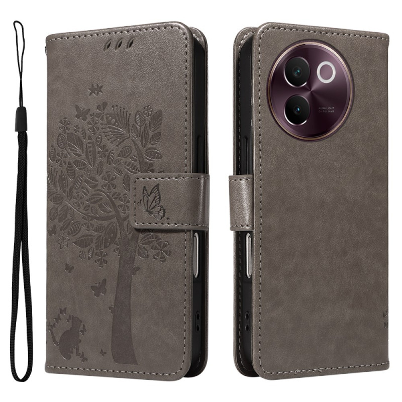Suojaa Vivo V40 Lite 5G -puhelimesi tyylikkäästi tällä monikäyttöisellä lompakkokotelolla. Sen hienostunut muotoilu, jossa on kissa- ja puuaihe, korttipaikat ja integroitu pidike tekevät siitä ihanteellisen jokapäiväisen lisävarusteen.