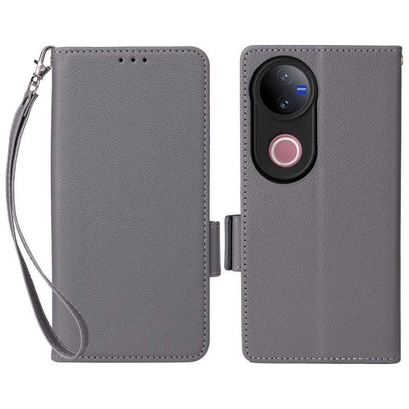 Tutustu tyylikkääseen lompakkokoteloon Vivo V50 5G:lle. Siinä on hienostunut lychee-kuosi, ja siinä yhdistyvät tyyli ja toiminnallisuus korttipaikoilla, handsfree-tuella ja turvallisella magneettisuljennalla. Mukana tulevan käsihihnan ansiosta sitä on helppo kantaa mukana.
