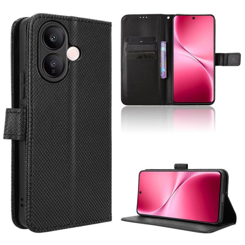 Tutustu tähän tyylikkääseen timantinkuvioiseen lompakkokoteloon vivo V60 Lite 5G -puhelimelle. Siinä on korttilokerot, käteistasku ja käytännöllinen rannehihna, ja siinä yhdistyvät tyyli ja toiminnallisuus, jotta voit suojata puhelintasi joka päivä.